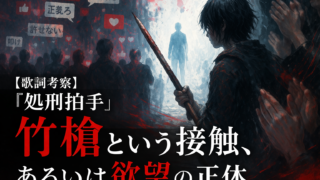 SNSの炎上や私刑を描いた楽曲とされるTRAP CHICK『処刑拍手』。しかし本作の核心は「正義」ではなく「欲望」にある。竹槍という異質なモチーフを手がかりに、他者を「コンテンツ」として消費する構造と、触れられない他者へのリアリティの飢えを読み解く批評。